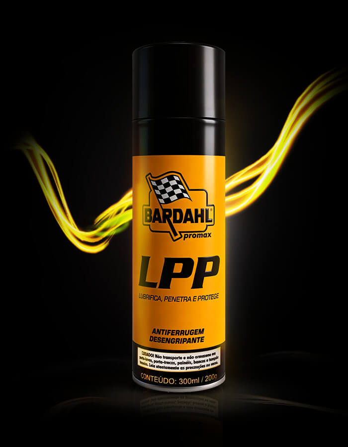 Embalagem de 300ml: pulverize Bardahl LPP dirigindo o jato aerossol sobre a superfície desejada. Em locais de difícil acesso, utilize o extensor.